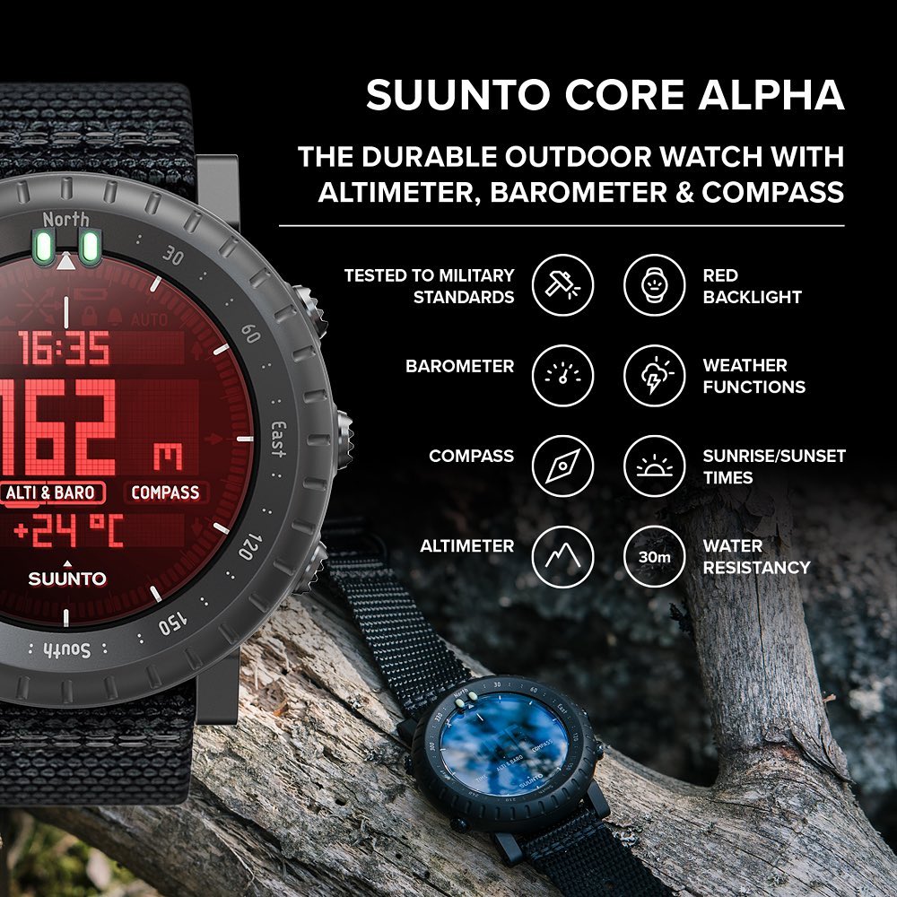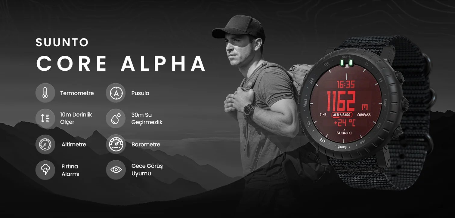 Suunto Core Alpha Stealth, sağlam yapısı ve rahat ama dayanıklı tekstil kayışıyla temel dış mekan özelliklerini bir araya getiriyor. Suunto Core Alpha Stealth, Altimetre, Barometre ve pusulayı hava durumu bilgileriyle bir araya getirerek içinizdeki kaşifi ortaya çıkaracak. Gece görüş gözlüğü dostu kırmızı arka ışık, maceralarınızda fark edilmemenizi sağlar.