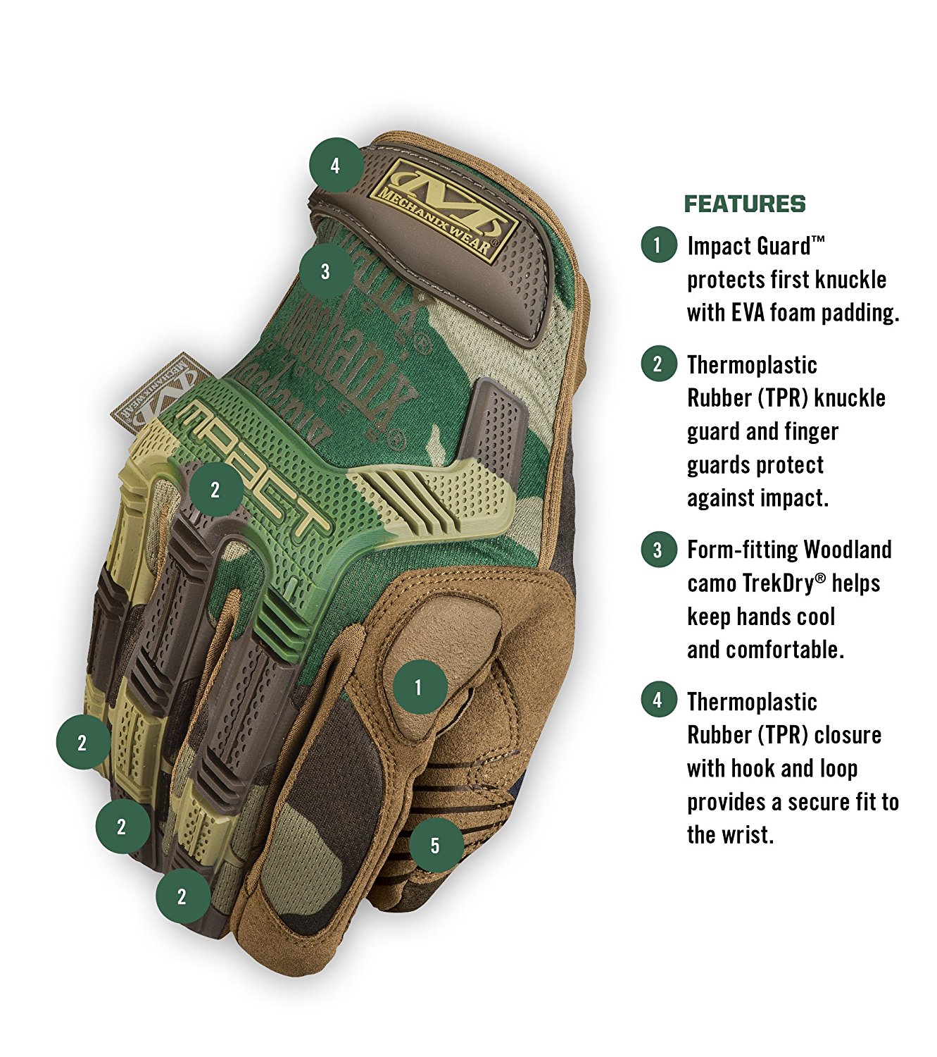 Patented Impact Guard™ protects the first knuckle with EVA foam padding.